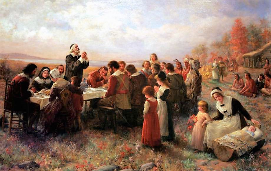 The First Thanksgiving at Plymouth by Jennie Brownscombe 1914 Pilgrim Hall Museum Plymouth MA 2 edit